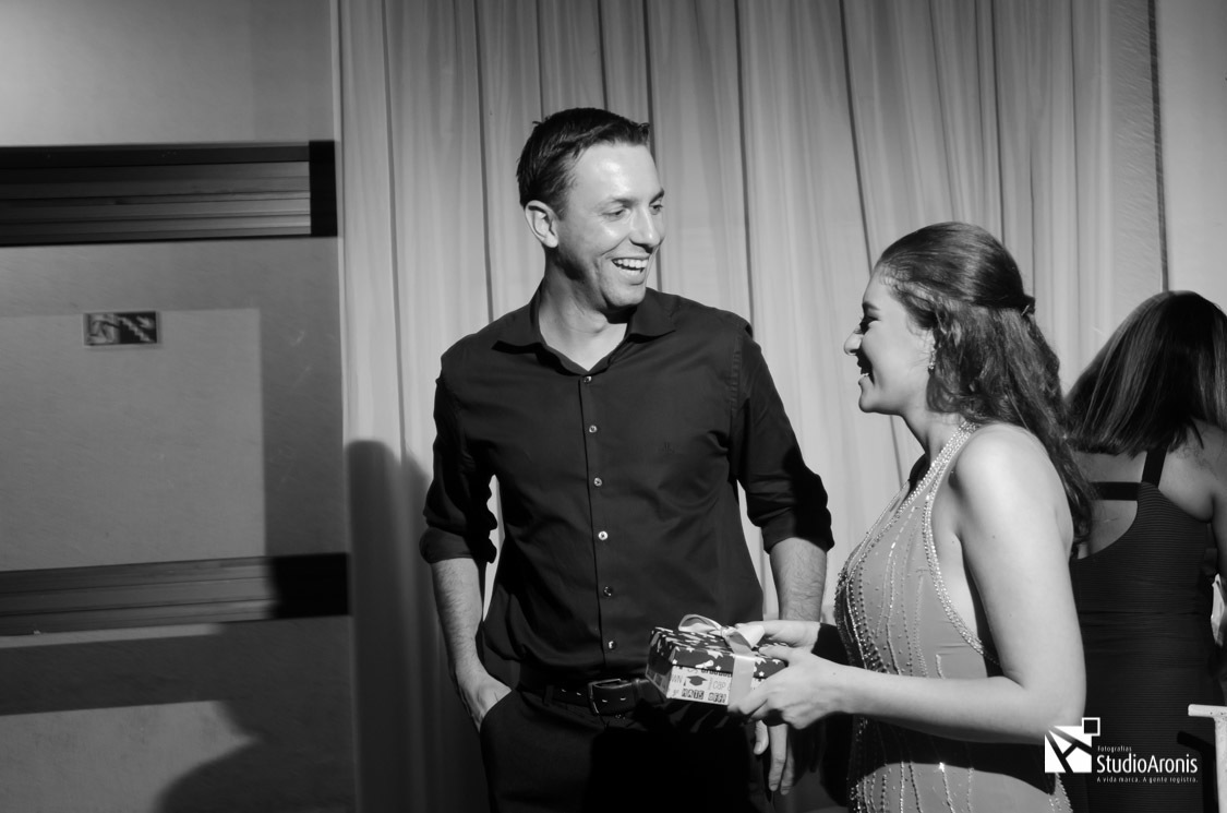 No dia seguinte à colação, a Jéssica recebeu seus convidados na Sociedade Italiana, onde nossa equipe seguiu com os registros nesta noite animada, repleta de amigas e familiares.